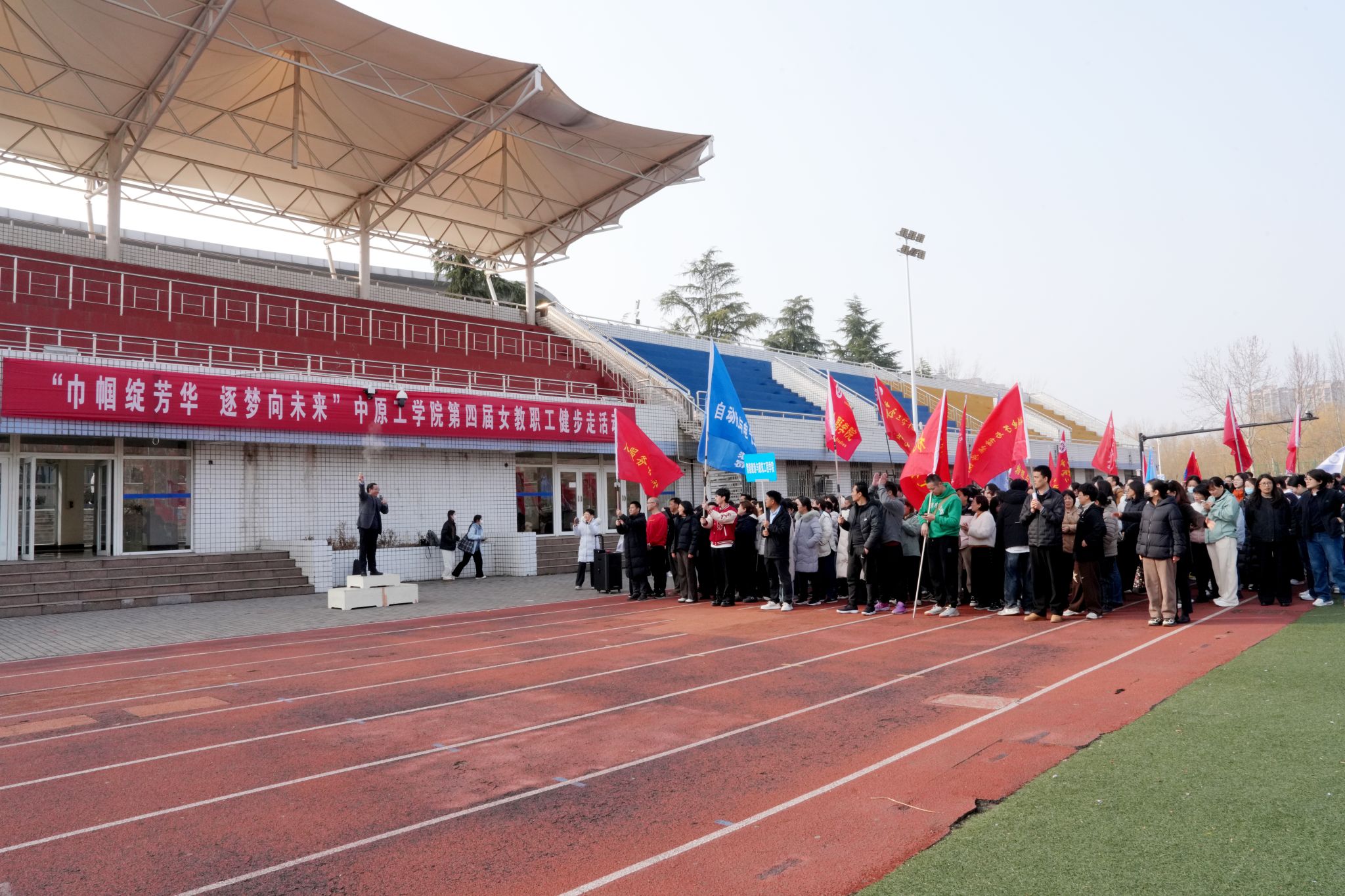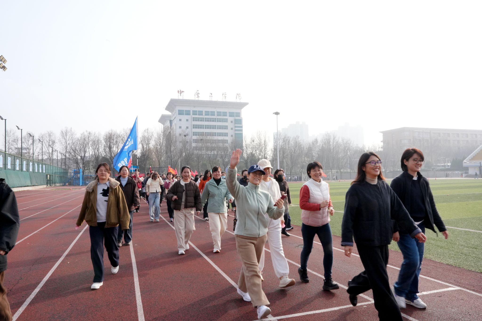 春风送暖,万象更新。为庆祝第116个“三八”国际劳动妇女节,团结引领广大女教职工在推动学校高质量发展中贡献巾帼力量,校工会于3月启动“巾帼绽芳华·逐梦向未来”主题系列活动,以丰富多元的形式致敬校园里的“她力量”。3月5日,龙湖校区中心田径场上欢声笑语,校工会举办的庆“三八”女教职工校园健步走活动火热开启。学术副校长张纪峰为活动鸣枪发令,近650名教职工迎着春日暖阳阔步前行,在运动中舒展身心,在交流中增进情谊,成为干净整洁的校园里一道跃动的风景线。