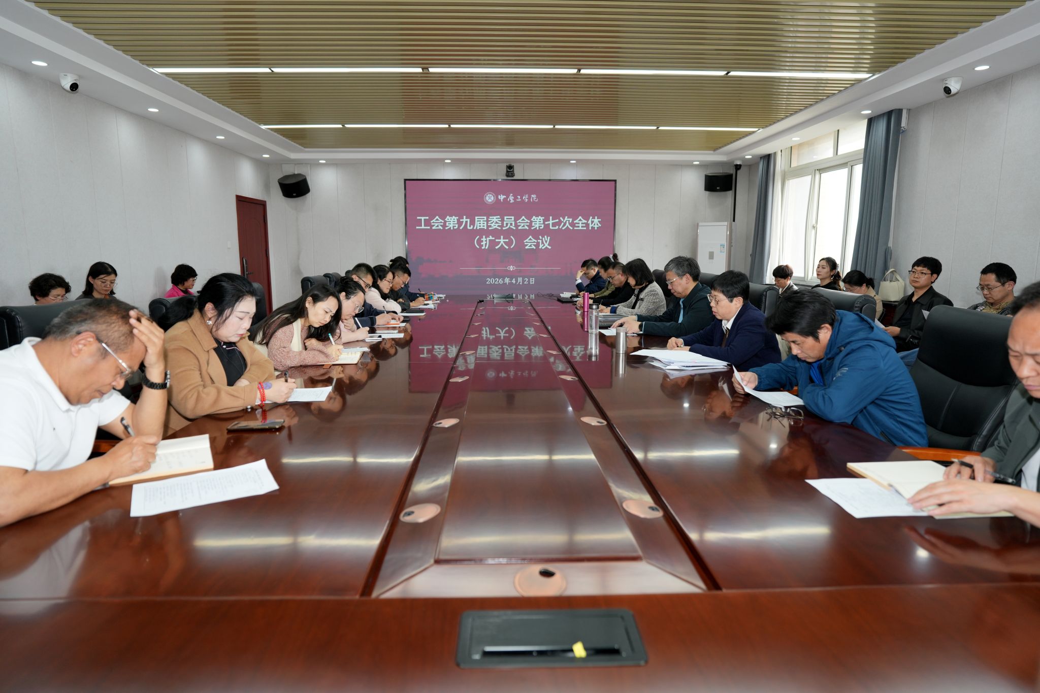 4月2日下午,我校工会第九届委员会第七次全体(扩大)会议在龙湖校区召开。校党委副书记、工会主席宋晓炜出席会议并讲话,工会委员会委员、各基层工会主席及校工会全体成员参加会议。会议由工会办公室主任赵巧萍主持。