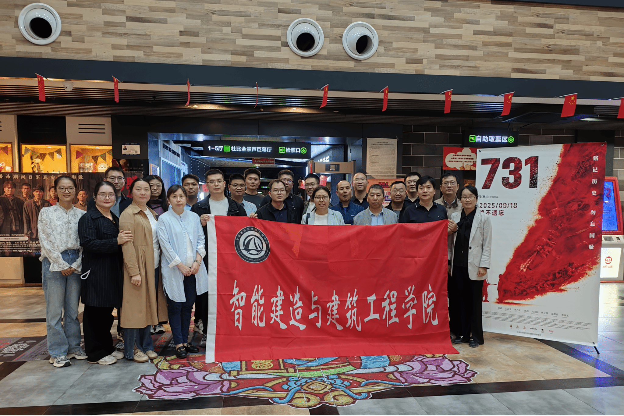在国庆节来临之际,为缅怀革命先烈,铭记苦难历史,进一步激发教职工的爱国热情与奋斗精神,智能建造与建筑工程学院分工会于9月29日组织工会会员集体观看了爱国主义题材电影《731》。