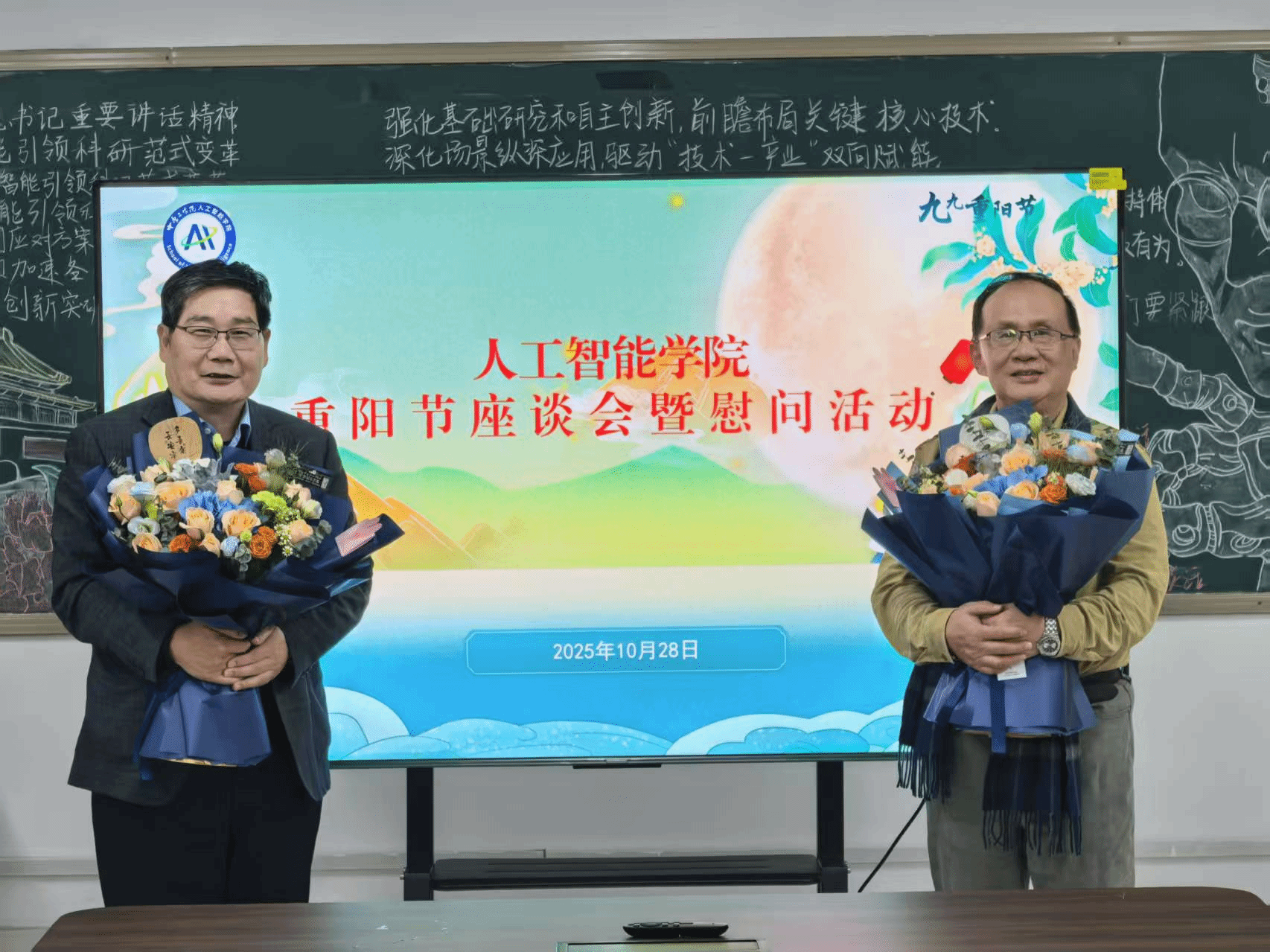 为弘扬中华民族尊老、敬老、爱老的传统美德,营造尊师重教的良好氛围,10月28日,人工智能学院分工会在三号组团楼A915会议室举行重阳节座谈会暨慰问活动,向学院60周岁以上的教职工致以节日的问候和诚挚的敬意。人工智能学院院长陈东义、教师车战斌出席活动,学院分工会工会委员及部分教师代表共同参于此次活动。