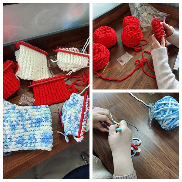活动从了解冬至文化入手,随后大家一起学习手工编织围巾的方法,从组装工具到一下一下的绕线,每一个动作都饱含心意。先学会的老师手把手指导其他老师学习编织技巧,大家围坐一堂,一边编织一边交流,不仅掌握了新技能,也增进了情谊,活动现场欢声笑语,暖意融融。