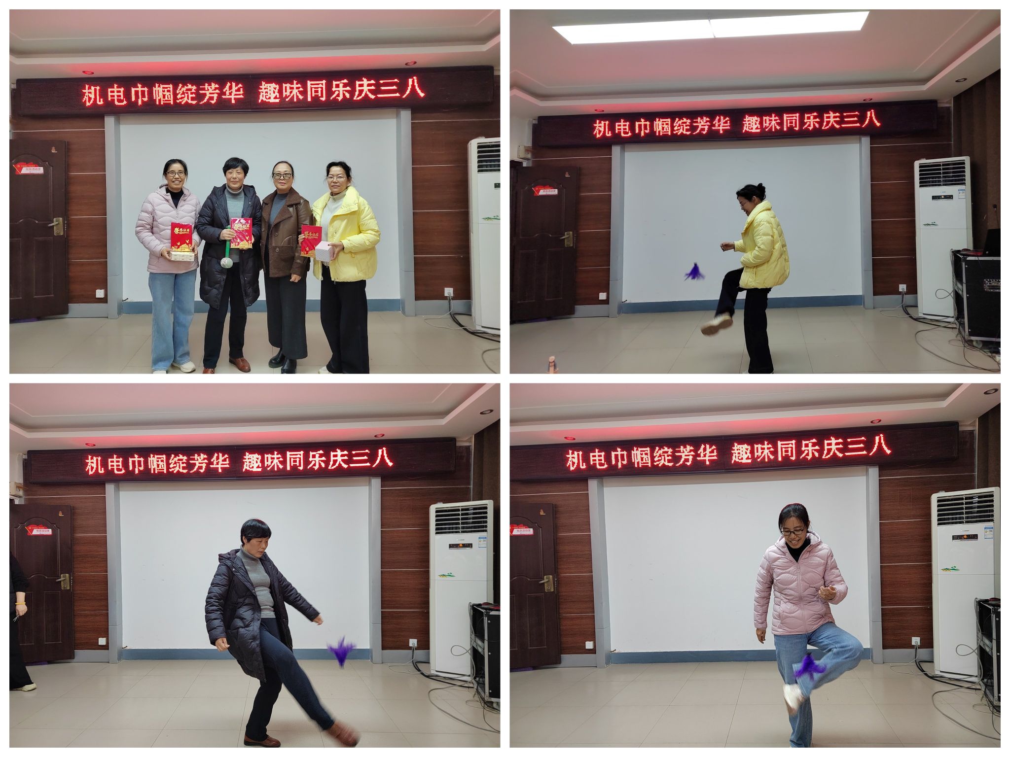 踢毽子比赛现场。随着裁判一声令下,小小的毽子在女教工的脚尖上下翻飞,时而轻盈点地,时而凌空飞舞。她们身姿舒展、动作敏捷,充分展现了机电女教职工朝气蓬勃、活力满满的精神风貌。最终李雪丽、梁颖、倪莉老师获得以、二、三等奖,学院工会为她们颁发了荣誉证书与精美礼品。